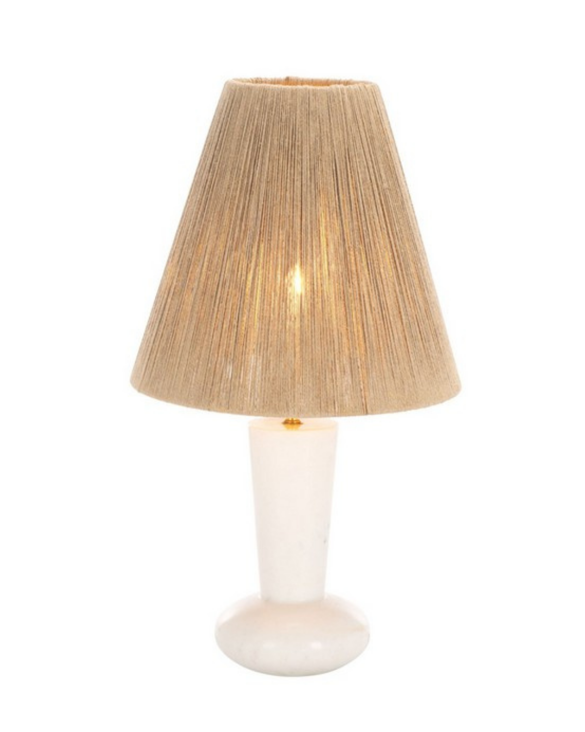 Materials: White Marble Body, Sisal Fiber Shade in Natural
