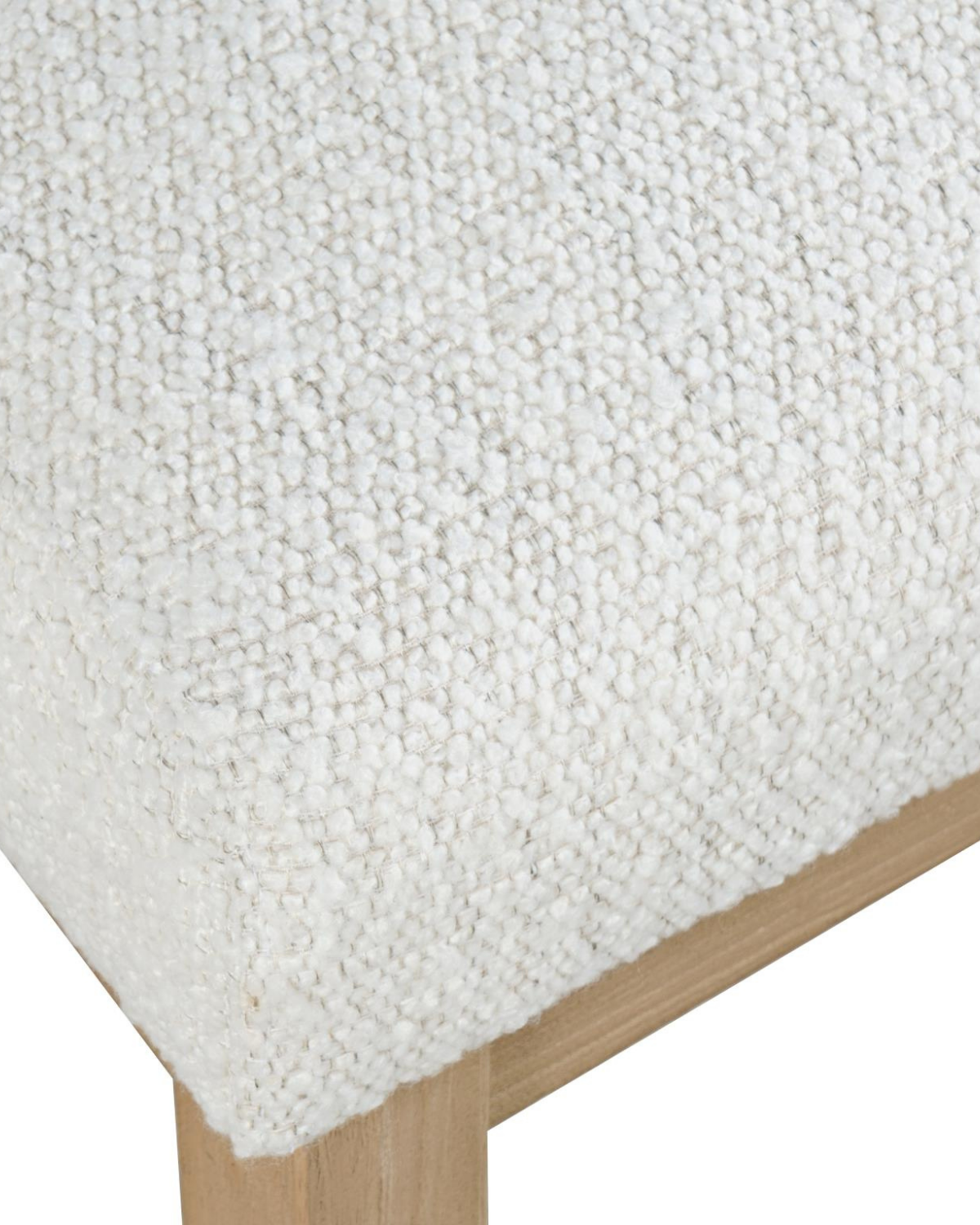 Materials: Stain-Resistance Boucle in Alabaster, Solid Rubber Wood in Natural