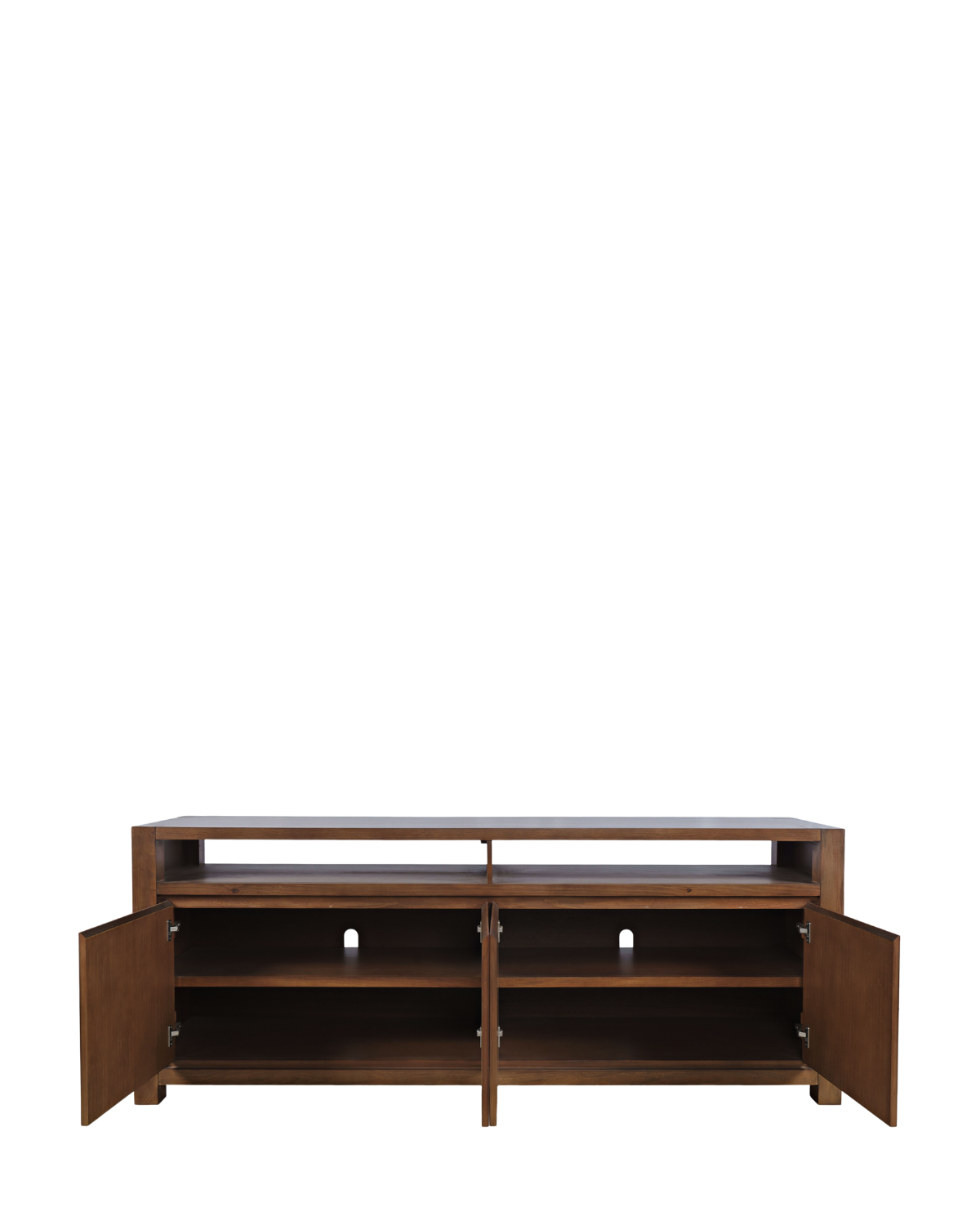 The Brownstone Media Console brings effortless modern warmth to your space with its light, natural wood finish and clean-lined silhouette. Designed for both beauty and practicality, it features four cabinet doors for discreet storage and open shelving for easy media access. Its airy design complements a variety of interiors, from coastal to contemporary, offering a sense of calm and refinement. The Brownstone Console seamlessly balances style and function for a polished, clutter-free look.