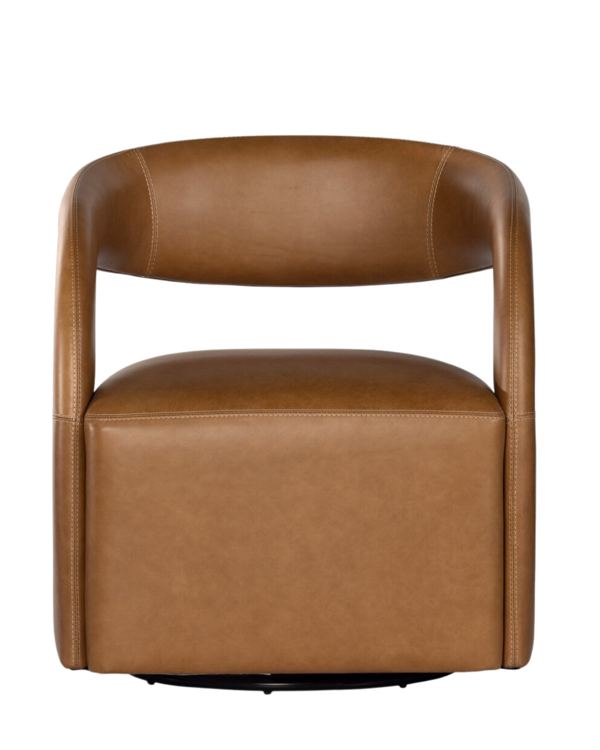 This 360-swivel update of the fan-favorite stationary design makes quite the statement. Well curved and finely sculpted, butterscotch-colored top-grain leather exclusive to Four Hands makes a uniquely shapely statement in any room.