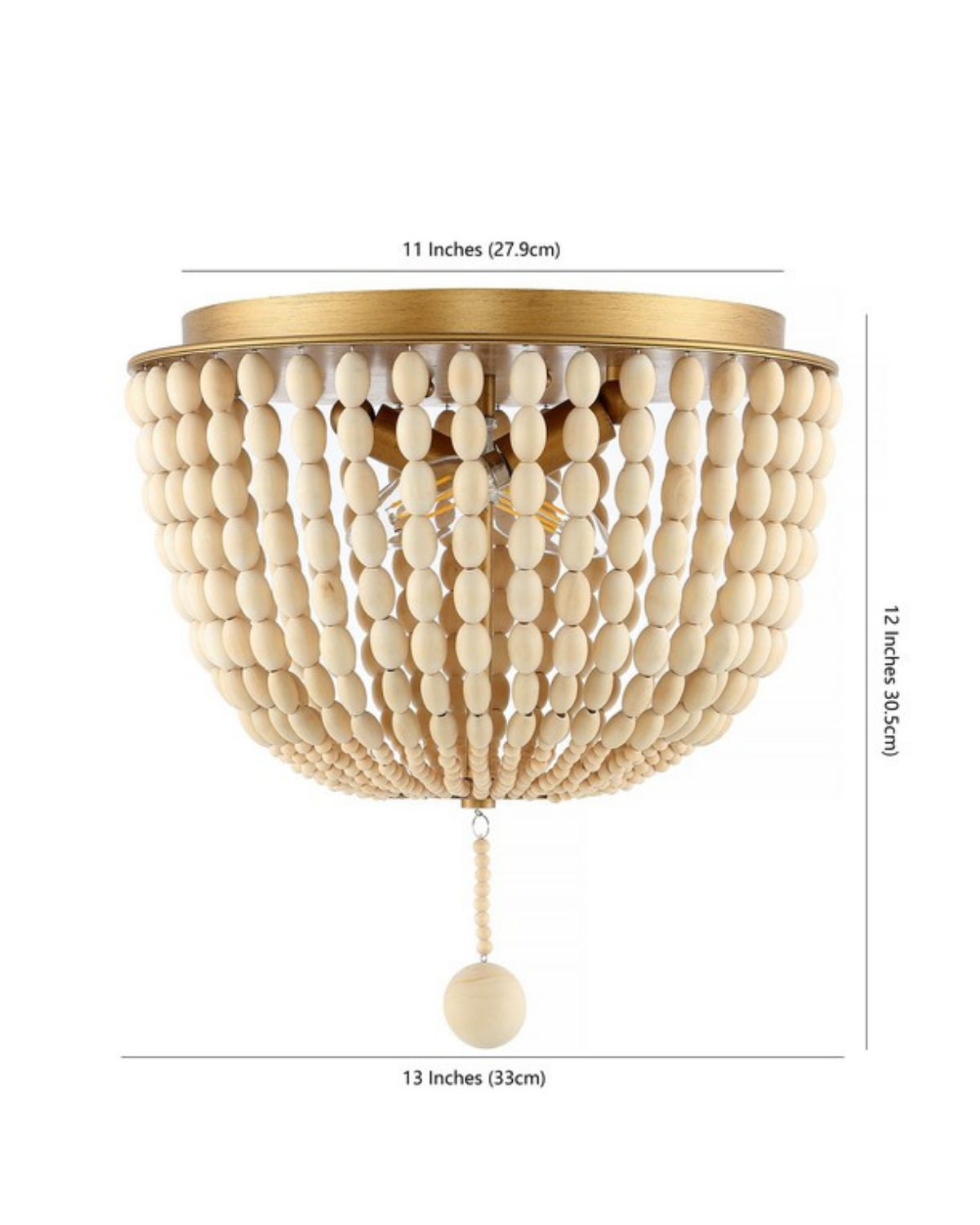 The Loris Flush Mount blends bohemian charm with modern sophistication. Cream wooden beads cascade gracefully from a polished gold base, creating a soft play of light and texture that adds warmth and elegance to any room. Effortlessly striking yet refined, the Loris brings a touch of natural beauty and contemporary glamour to your space.