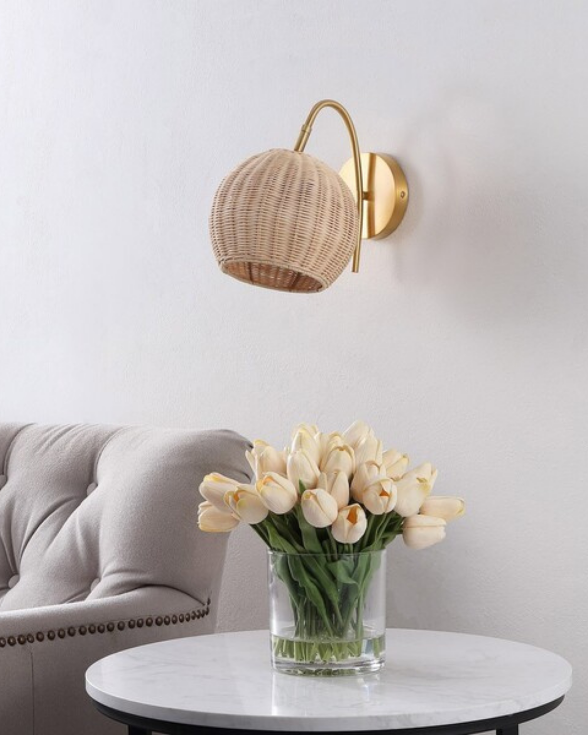 The Nahum Wall Sconce brings natural texture and effortless charm to your space. Featuring woven rattan globe shades and elegant brass accents, it combines organic warmth with a touch of polish. The curved arm and round back plate create a soft, sculptural silhouette that complements both modern and coastal interiors. Casting a gentle, dappled glow, the Nahum Sconce adds breezy sophistication and inviting light to hallways, bedrooms, or living areas.