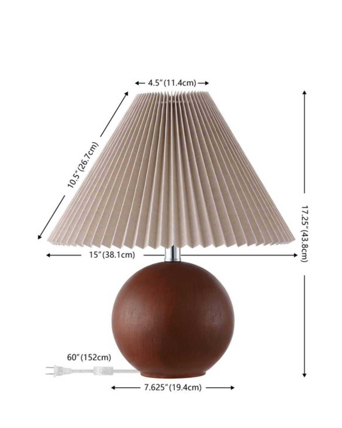 Materials: Resin Body in Dark Walnut Finish, Polyester/Linen Shade in Oatmeal