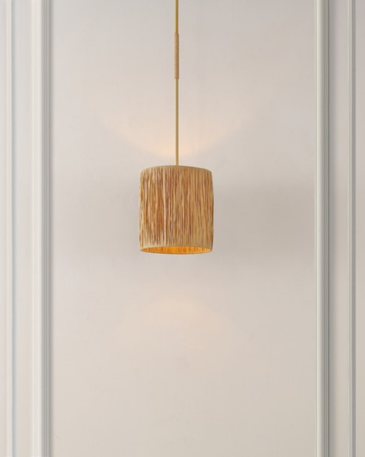 The Saija Extendable Pendant brings relaxed elegance and natural texture to any space. Featuring a cylindrical drum shade with rich woven detail, it adds warmth and depth to your décor. The clean lines and natural finish pair beautifully with gold accents, offering a refined yet casual charm. Perfect on its own or styled in multiples over a kitchen island, breakfast nook, or hallway, the Saija Pendant creates soft, inviting light and a timeless, effortless appeal.