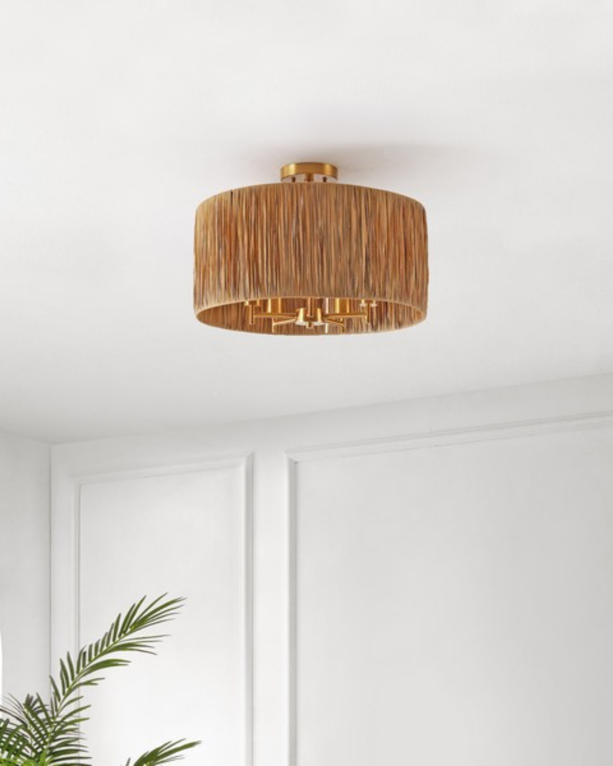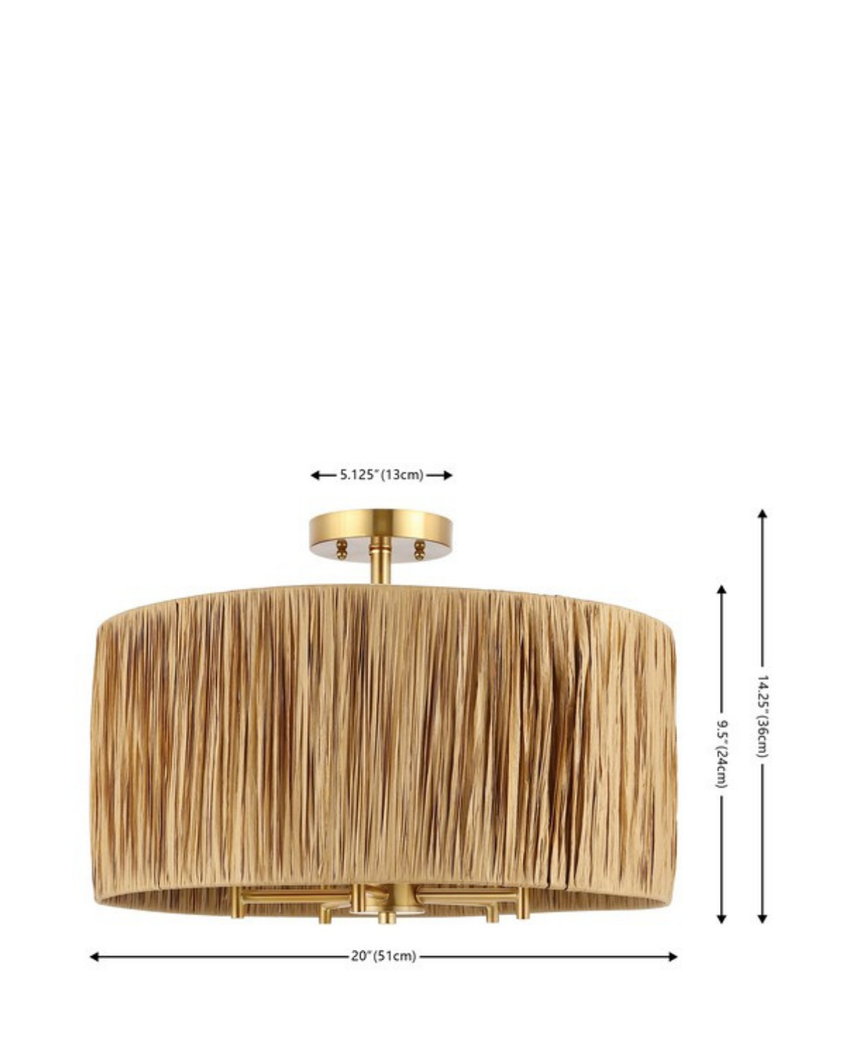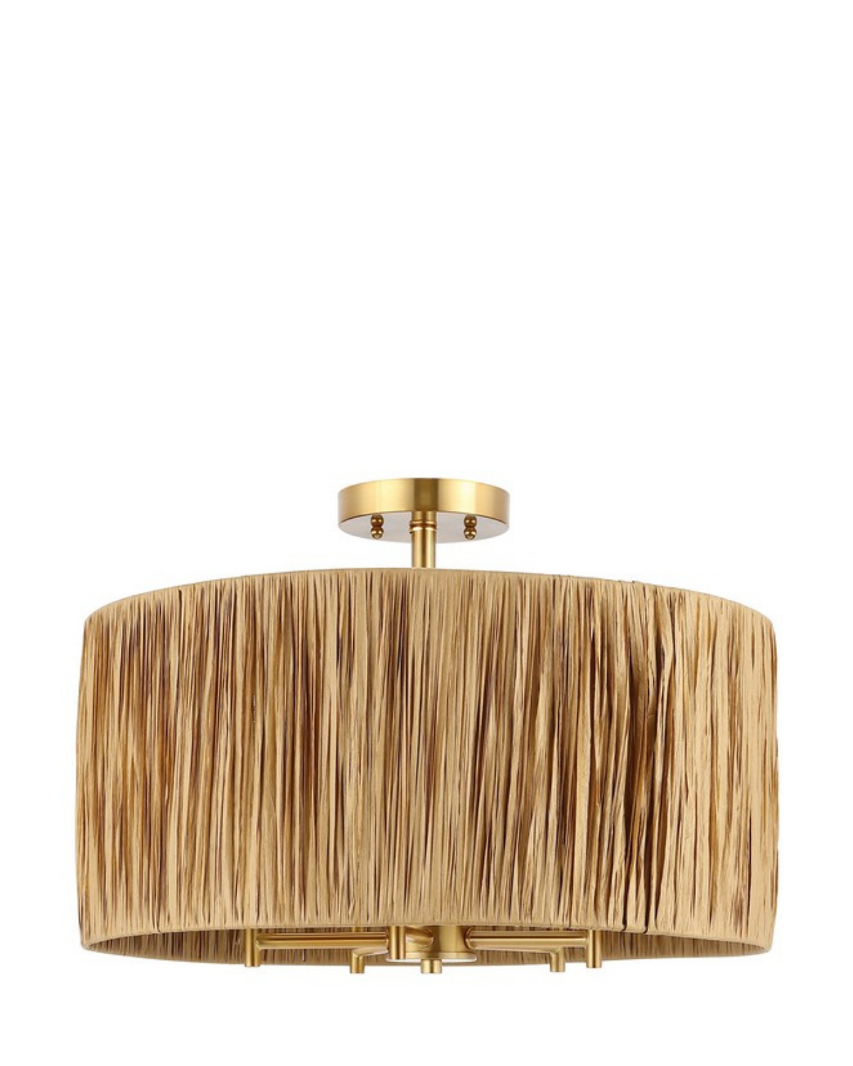 The Selah Flush Mount brings relaxed refinement and natural texture to your home. Featuring an oversized drum shade wrapped in clean, linear detailing, it creates a soft, textural statement overhead. The warm natural finish is complemented by gold hardware for a touch of elegance, while five interior lights provide bright, inviting illumination. Perfect for kitchens, dining rooms, or bedrooms, the Selah Flush Mount adds warmth, sophistication, and a breezy sense of balance to any space.