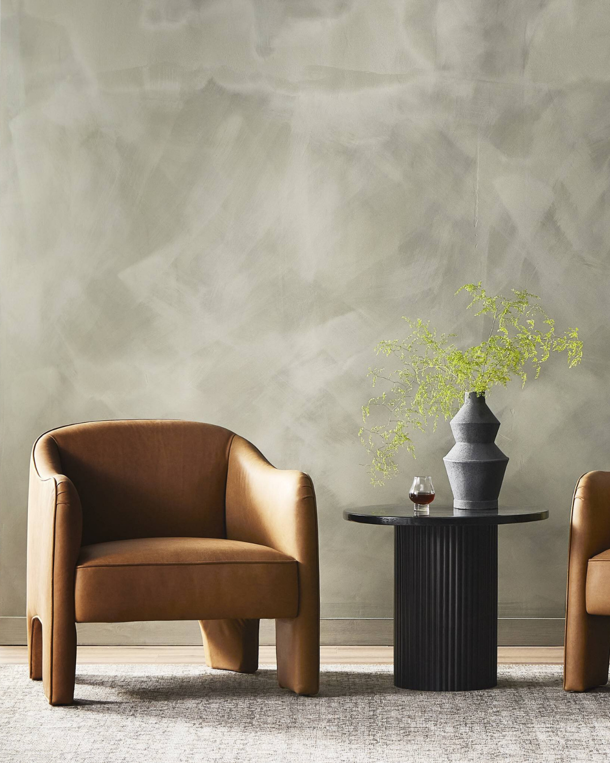 Shape-driven and sustainably made, this modern accent chair is upholstered in carbon neutral, vegetable-tanned leather processed using naturally fallen eucalyptus leaves in Uruguay. S-spring construction ensures a supportive sit, while side cutouts catch the eye.
